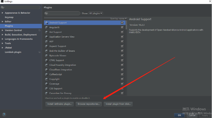 2. 安装插件,点击File--->settings-->plugins-->然后点击以下图中所示,