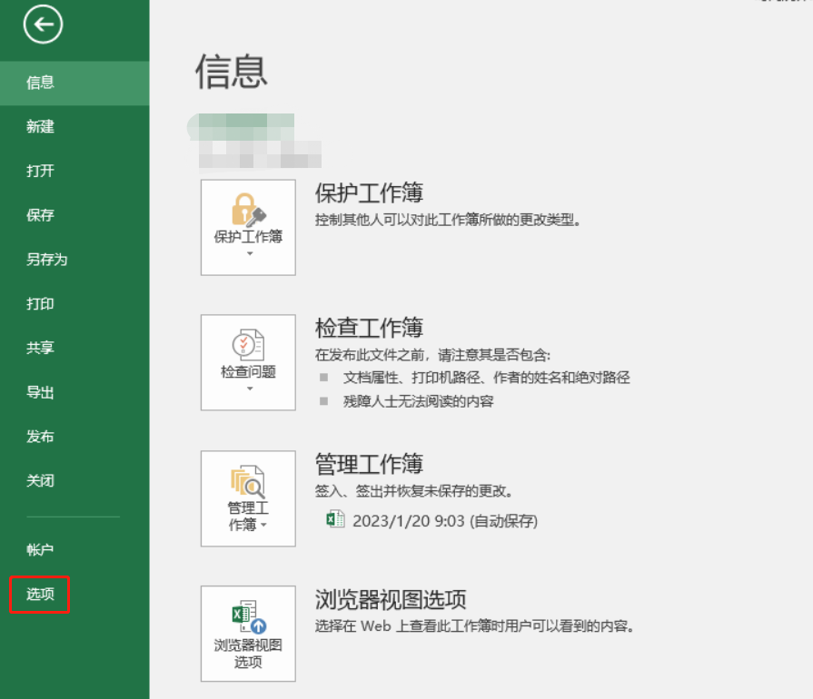 Excel中如果需要增加复选框按钮,可以点击"文件",进入选项界面,
