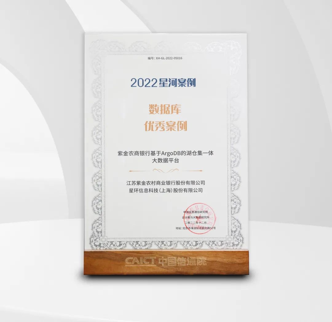 近日,由中国信息通信研究院及中国通信标准化协会大数据技术标准推进委员会(CCSA TC601)共同组织的2022大数据「星河」案例重磅揭晓。星环科技作为支持单位与客户联合申报的四项成果斩获一个标杆案例、三个优秀案例。其中,郑州商品交易所全景数据分析平台获评行业数据应用方向标杆案例;甘肃省住房和城乡建设厅互联网+政务服务和监管系统获评行业数据应用方向优秀案例;紫金农商银行基于ArgoDB的湖仓集一体大数据平台、基于分布式数据库的互联网金融业务系统分别获评数据库方向优秀案例。