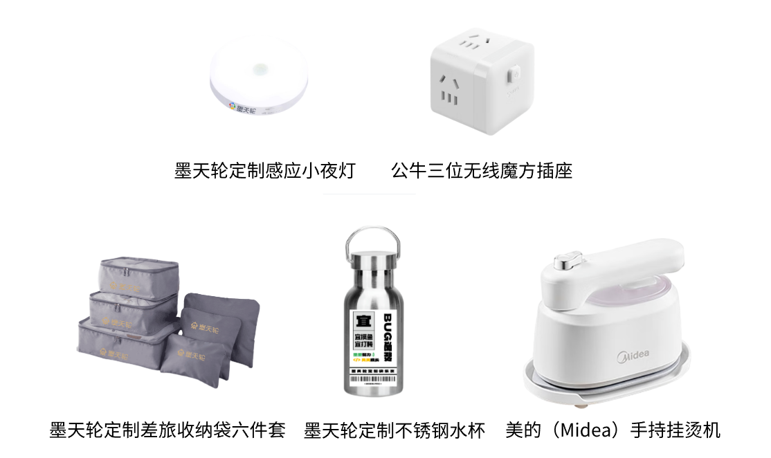 | X>6 | 墨天轮月度会员/墨天轮定制差旅收纳袋六件套/墨天轮定制不锈钢水壶(限量1份)/美的(Midea)手持挂烫机(限量1份) |