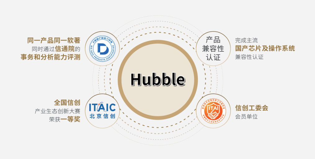 天云数据的Hubble数据库是同一产品同一软著同时通过信通院的事务和分析能力评测,而且完成主流国产芯片及操作系统兼容性认证,在北京信息化协会主办的全国信创产业生态创新大赛荣获一等奖。此外,天云数据是信工委的会员单位,在信创的体系之内,而且在年初国有四大银行之一中行采购具备HTAP能力商用分布式数据库天云数据也是第一名身份中标。