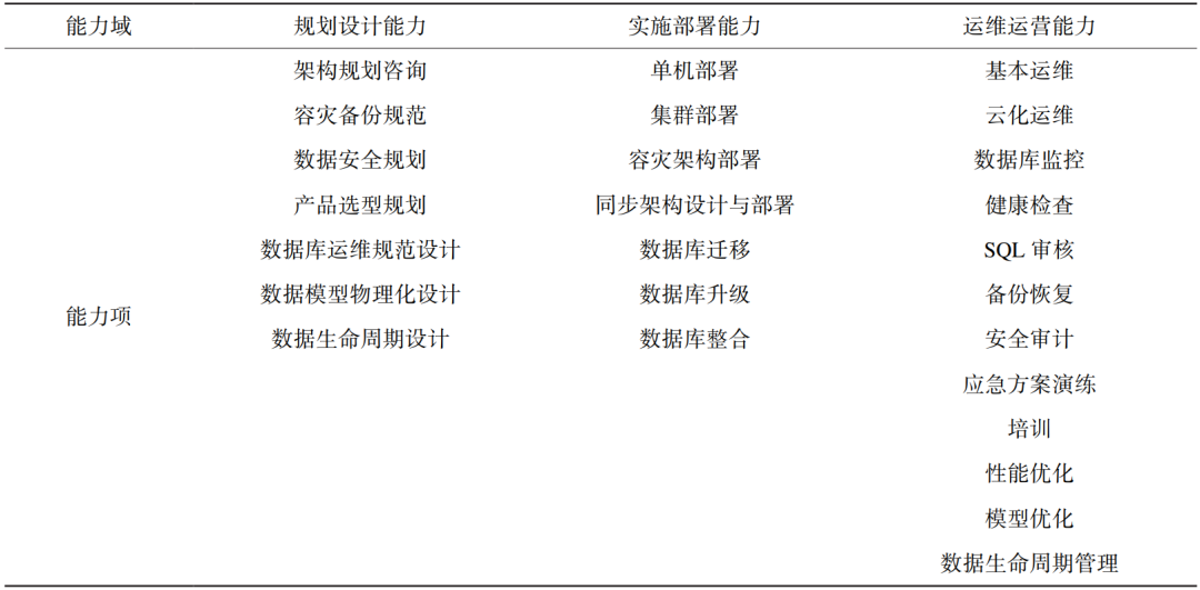 表1 数据库服务能力成熟度模型中的能力领域划分