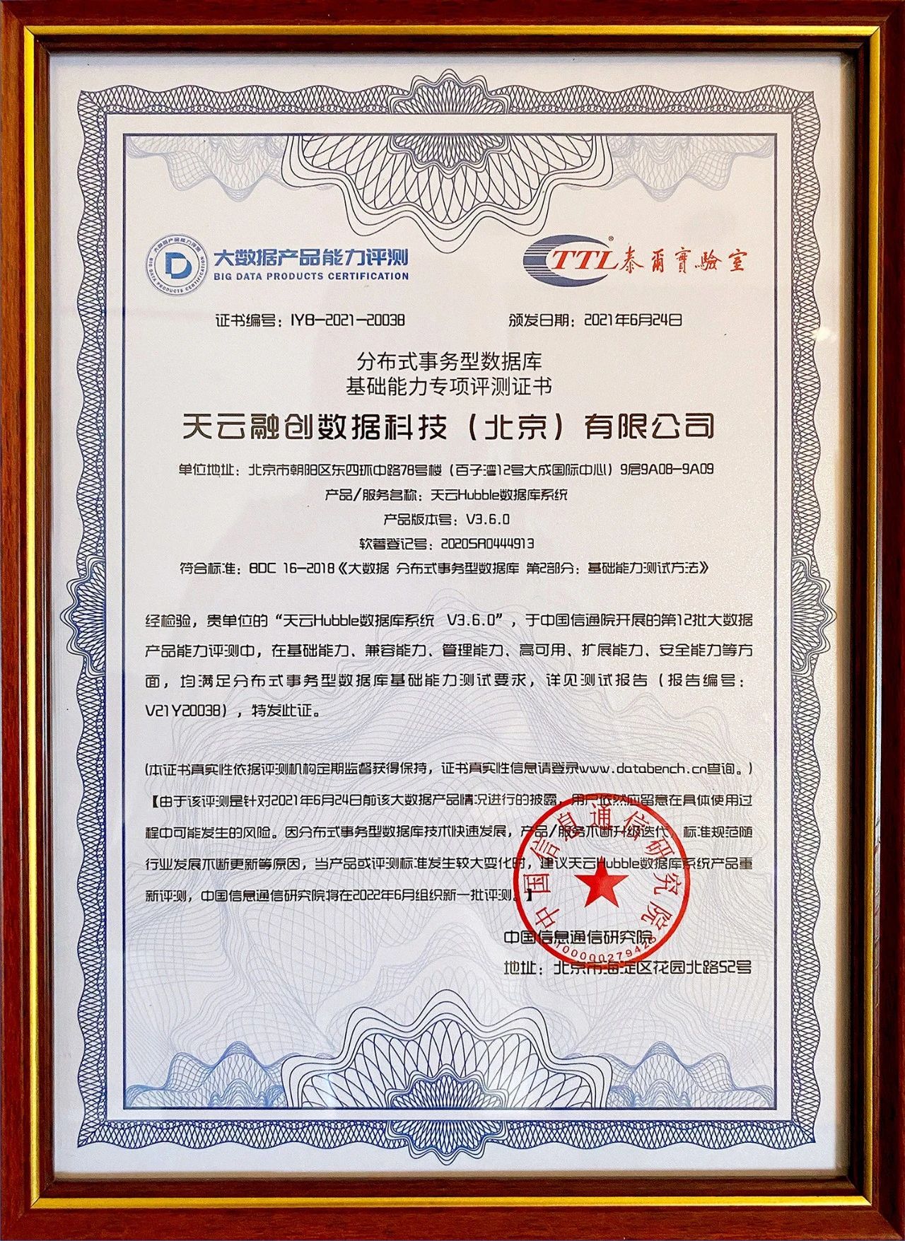 6月24日,由中国信息通信研究院举办的“2021大数据产业峰会成果发布会”在京召开,会上中国信息通信研究院为通过“大数据产品能力评测”的企业颁发证书。天云数据自研分布式数据库Hubble以优异的成绩通过分布式事务数据库基础能力、兼容能力、管理能力、高可用能力、扩展能力与安全能力六项评测。这无疑印证了Hubble在分布式数据库事务领域的领先技术优势。