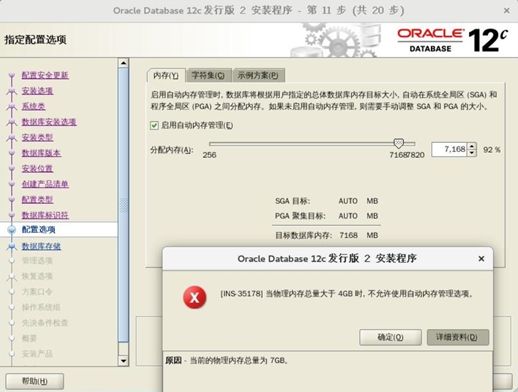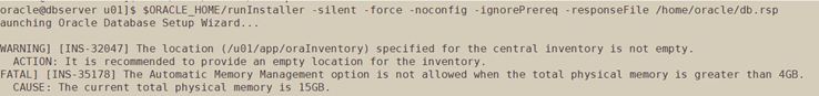 问题描述:静默安装oracle 12c时报错INS-35178, 如下所示: