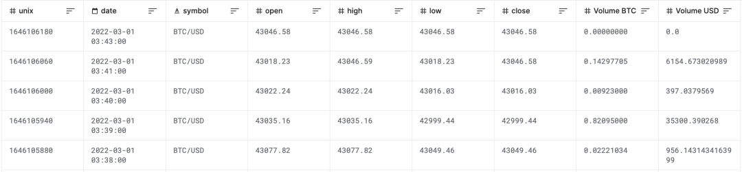 我们来计算一下 2022 年 1 月 1 日这一天的平均 Volume_BTC/Volume_USD 以及总的 Volume_BTC/Volume_USD: