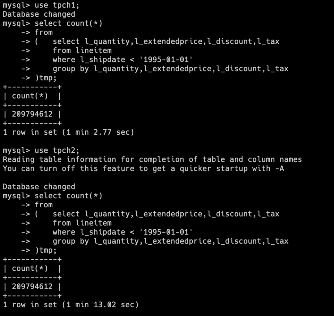 tpch2 库(老版本 Decimal)的 SQL 执行结果为 8.13s