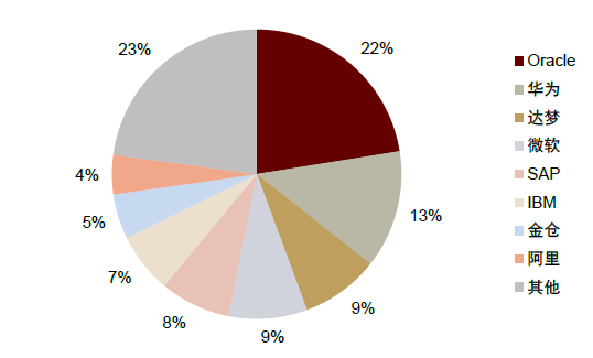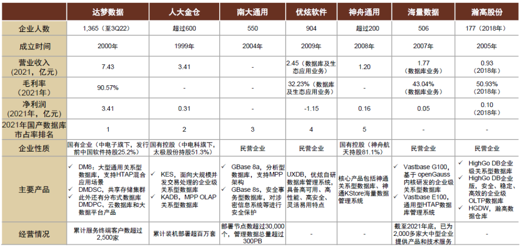 资料来源:赛迪顾问,达梦数据招股书,太极股份、优炫软件、海量数据、瀚高股份、神州航天公司公告,神州通用、南大通用官网,中金公司研究部
