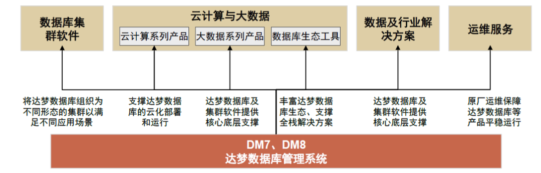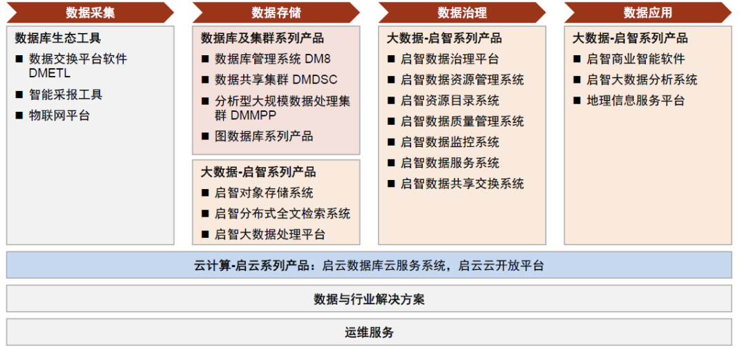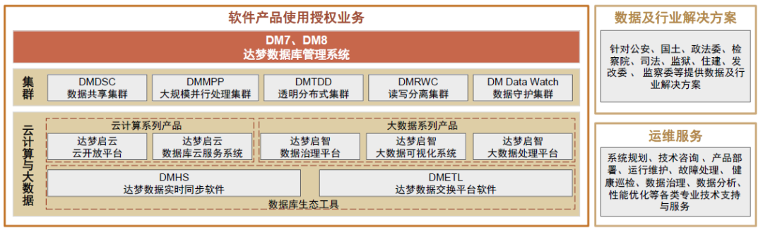 同时,公司在深耕集中式达梦数据库产品的基础上,布局数据库集群软件探索分布式实现路径,并衍生出大数据、云数据库等覆盖数据全生命周期的产品矩阵。