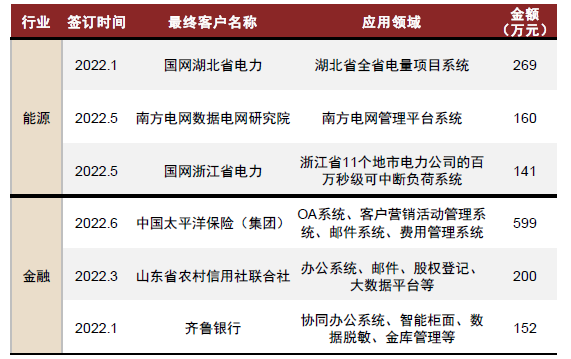 图表21:金融、能源重点行业达梦数据在手订单示例