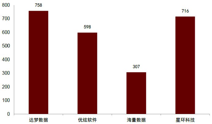 图表25:数据库相关上市公司技术人员数量(2021A)