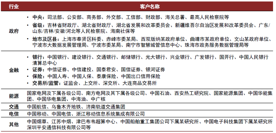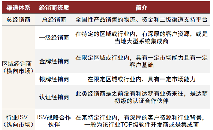 初步建成较为完善的渠道体系。公司自2018年起逐步搭建经销渠道,截至2021年末,公司已与近千家渠道客户签订经销协议,渠道销售网络遍布全国多个行业和地区,已经形成了总经销商-区域经销商-行业ISV的横纵体系、细分的经销商评级体系,同时有较为成熟的激励政策与合作支持。已在下游实际生产场景中广泛应用,终端客户数量领先。目前,公司产品已经在金融、能源、电信、航空、政府等数十个领域得到了广泛的应用,实际生产环境中的打磨是数据库产品走向成熟的重要助推力,建立“以用促研、以研保用”的正向循环能够帮助提升产品质量和成熟度、建立达梦品牌口碑。截至2021年度,公司软件产品使用授权业务终端客户达约2,500家。