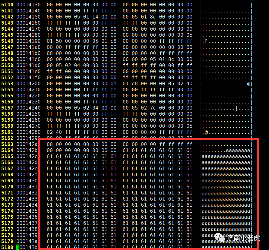 在命令模式下输入 4096 输入大写的G 调准到 第五个数据页