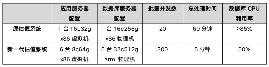 通过系统从应用层到数据层的整体分布式改造优化,得益于服务器资源的横向扩展能力和并行度的提高,在测试环境的条件下,将整体跑批时间由 1 小时缩短为分钟级,提高了估值核算数据的及时性。