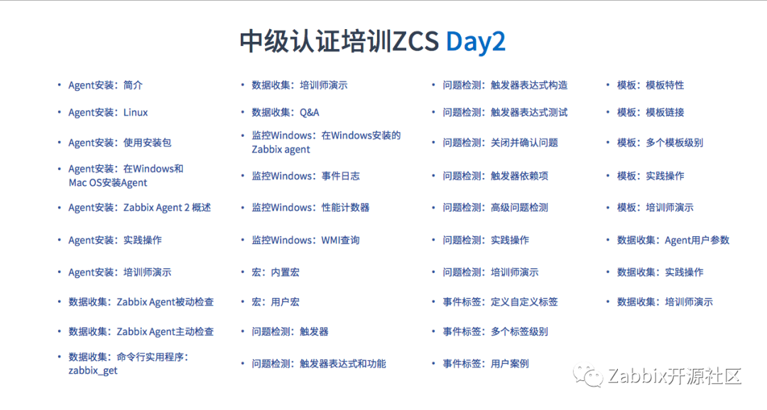 A:相信我,多得是你不知道的事!Zabbix与时俱进,6.0新增了很多功能,如何快速系统掌握?培训内容是Zabbix原厂设计的系统课程,讲师是通过Zabbix培训师考试和课程考试的认证培训师。培训由“理论+实践+咨询”组成,可以就自己公司问题和培训师交流。