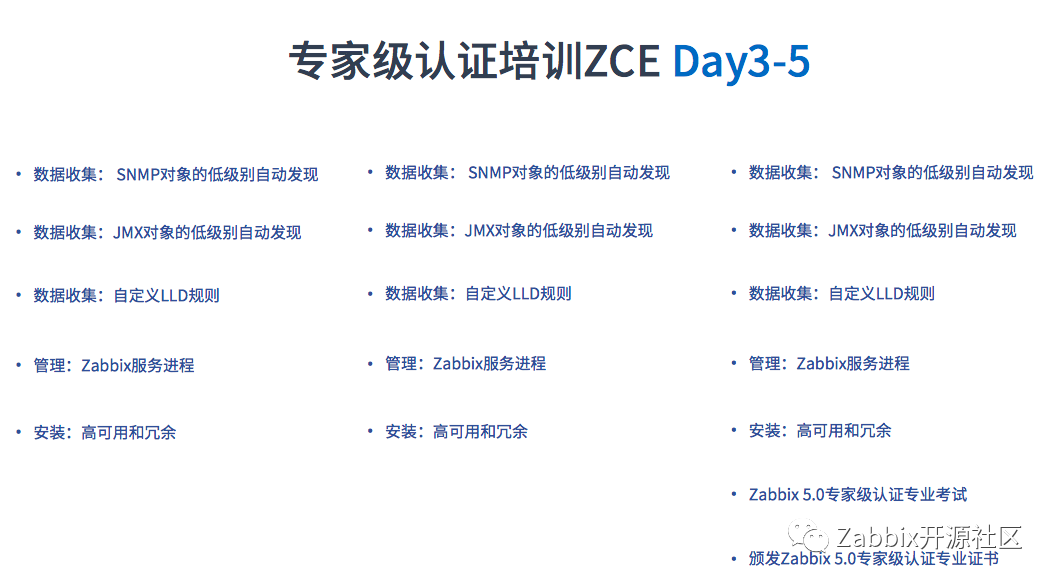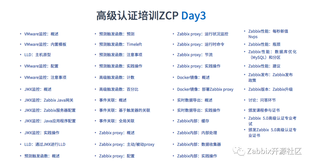 Zabbix原厂专门设计合理的等级认证培训,助你在短时间内系统学习并掌握,为公司解决问题,有利于升职加薪。