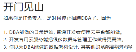 最近有一篇文章《你怎么还在招聘DBA》很火,里面的观点我非常不认同。
