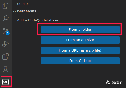 已成功创建。很简单,不是吗?现在,我们必须使用 QL 菜单将该数据库引入我们的 VS Code 工作区。