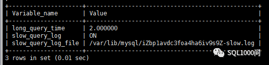 我这里设置慢查询时间long_query_time 设置的是2s,认为超过2秒即为慢查询
