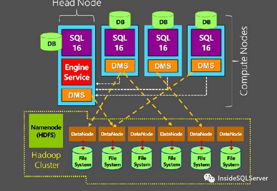 SQL Server Polybase:构建在传统RDBMS与大数据平台下的一个桥梁,使得在传统的关系型数据库中分布式处理结构化与非结构化数据更加便捷(如对比Hive),高效