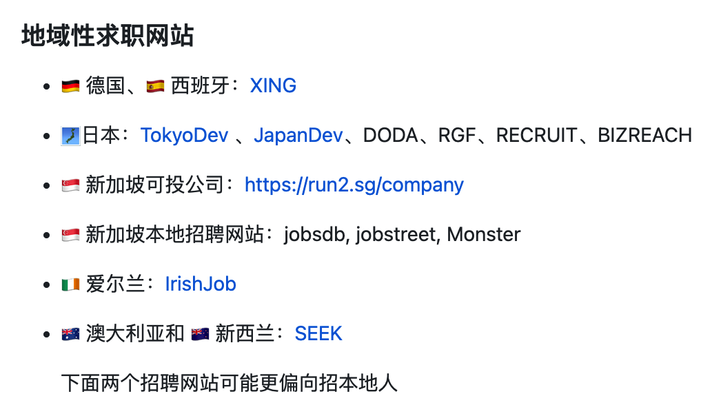这是 GitHub 上一位开发者整理的程序员海外工作 英文面试手册。上面收录了作者长期以来收集的直投海外找工作的技巧,包括简历润色、主流招聘网站、公司风评查询、面试准备、英文表达等内容。