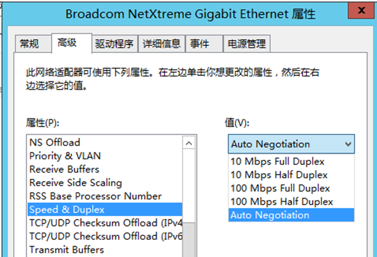 检查网卡当前设置为‘自适应’(Auto Negotiation),系统管理员建议网络组同事检查交换机端口状态