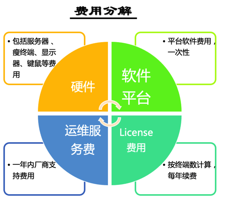 •从长期看,采用桌面云比传统PC更加节约成本。
