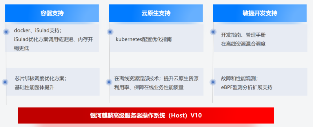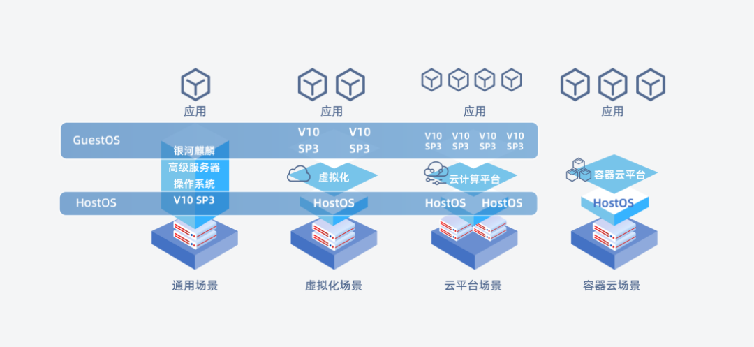 银河麒麟高级服务器操作系统(Host)V10可支撑用户轻松构建大型数据中心,并支持云原生、虚拟化、云平台、分布式文件系统等多种场景。在满足国家安全等级要求的同时,支持海量的云组件和不断创新的国产芯片和整机。目前,银河麒麟高级服务器操作系统(Host)V10凭借其优越的性能和良好的用户体验,已经在众多行业成功部署,为用户业务系统提供了安全稳定的运行环境 。