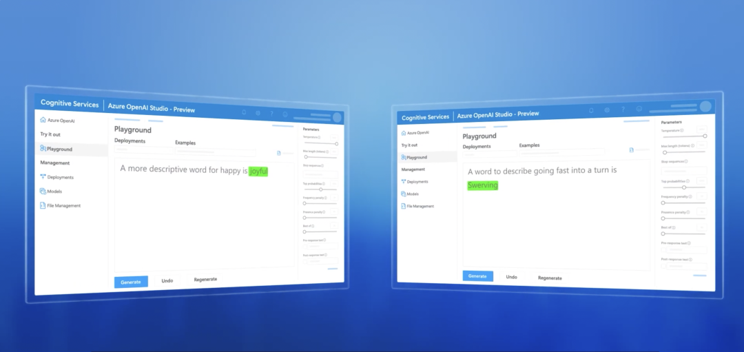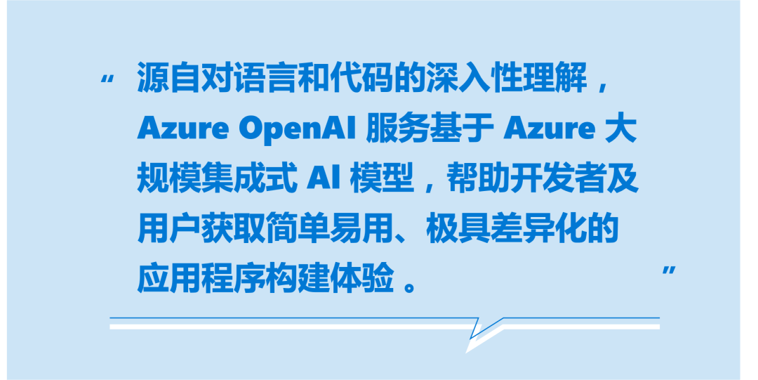 通过 Azure OpenAI,用户将获得从大规模的 Azure 托管服务到提供企业级安全保障的一系列应用程序构建体验。