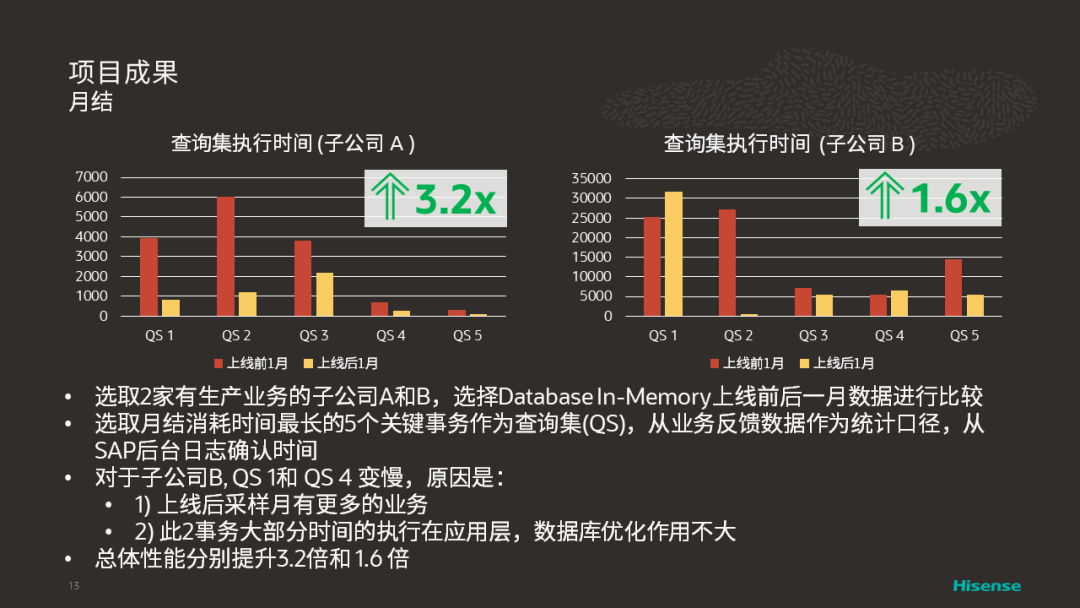 这两个场景都是用户最核心的业务,因此海信对其进行了周密的规划和严谨的实施。在整个项目实施过程中,积累了大量测试和实际运行数据,这些对海信自身或其它用户同类型应用都具有很高的参考价值。最后,用户也总结了使用Database In-Memory的好处和心得体会,包括应用透明性,性能提升明显,实施简单等,详情请见正文。