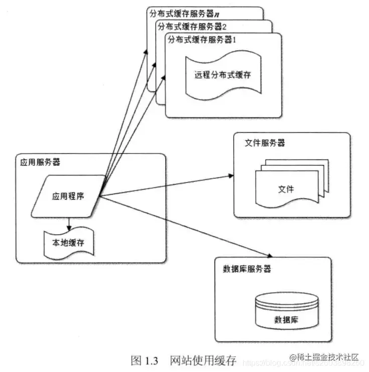 网站访问的特点和现实世界的财富分配一样遵循二八定律:80% 的业务访问集中在20% 的数据上。既然大部分业务访问集中在一小部分数据上,那么如果把这一小部分数据缓存在内存中,就可以减少数据库的访问压力,提高整个网站的数据访问速度,改善数据库的写入性能了。 网站使用的缓存可以分为两种:缓存在应用服务器上的本地缓存和缓存在专门的分布式缓存服务器上的远程缓存。