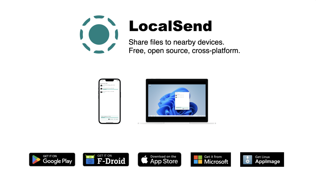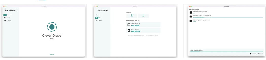 开源跨平台替代品,可以将文件共享到附近的设备,该应用允许你通过本地 LAN 网络发送文件和消息。不需要互联网,不需要外部服务器。一切都在 wifi 网络中本地发生。