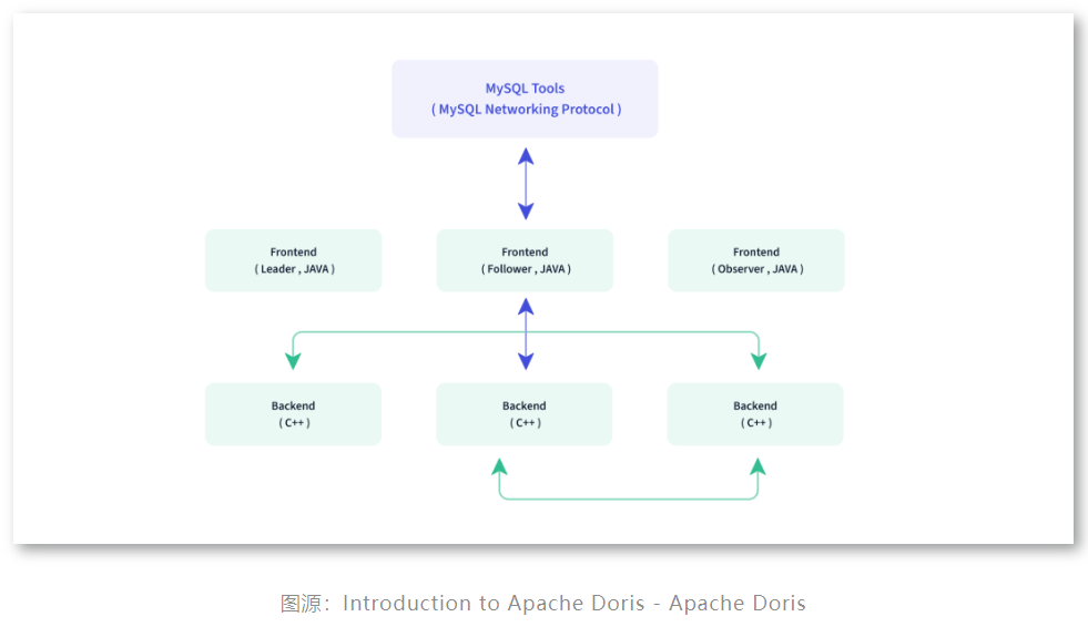 前身是百度2017年开源系统PALO,后贡献给Apache更名为Doris。Doris 是一个 MPP 的 OLAP 系统,主要整合了 Google Mesa(数据模型),Apache Impala(MPP Query Engine)和 Apache ORCFile (存储格式,编码和压缩) 的技术。高度兼容Mysql协议。