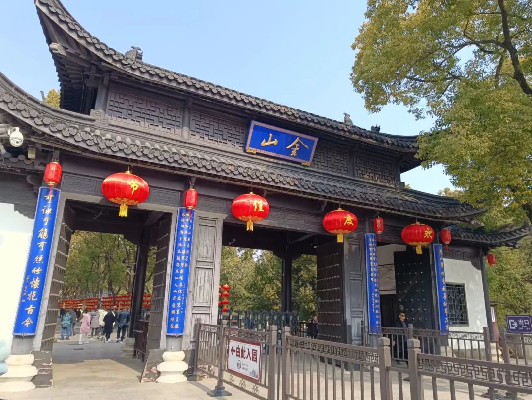 吃完饭去逛金山,金山位于镇江市西北,海拔43.7米,占地面积41.6公顷。古代金山原是屹立于长江中流的一个岛屿,但由于大江东流,经过长时间的冲刷左右与陆地连成一片,白蛇传中所述的水漫金山说的就是这里