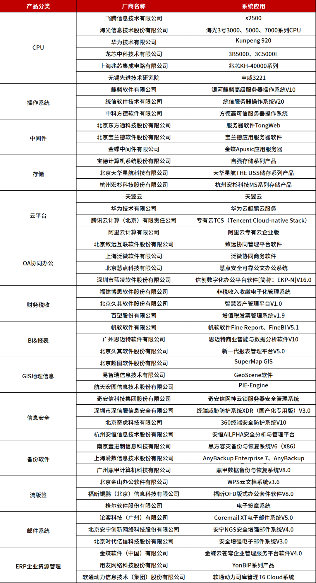 截至2022年底,已完成与2000余家伙伴企业超6000款产品的兼容认证。兼容的产品类型包括CPU类43款、操作系统类171款、中间件类105款、云平台类206款、各通用领域应用产品4300余款、各行业关键领域应用产品1000余款。