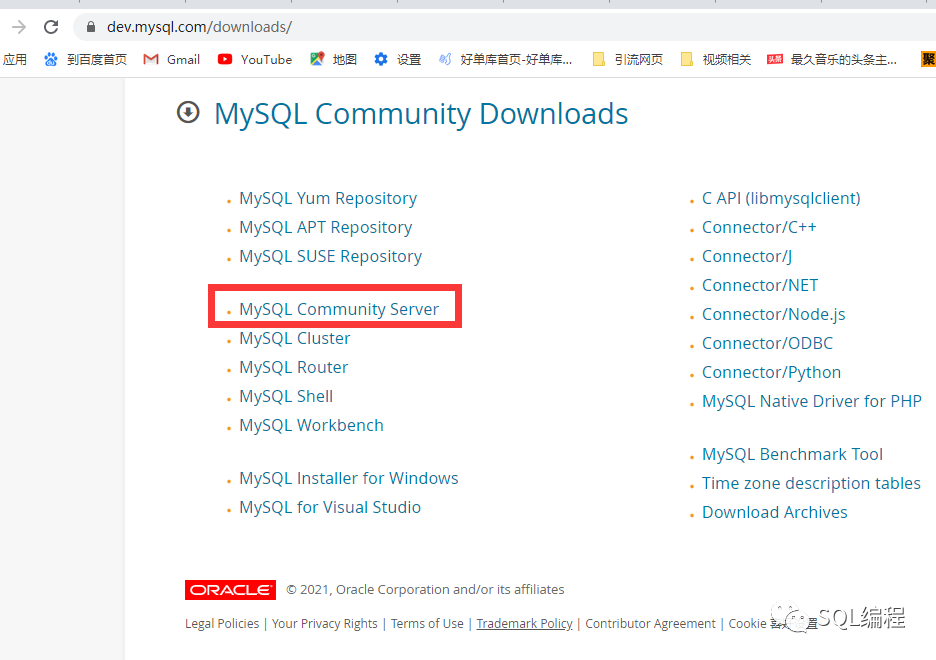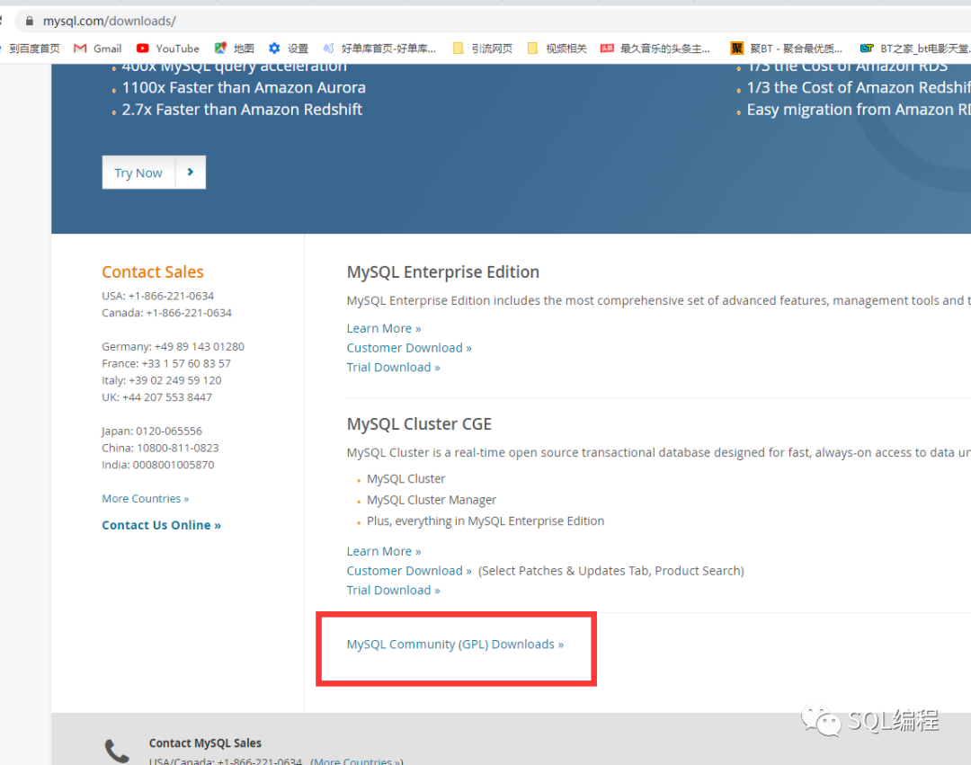2、拉到最下面,然后点击 MySQL Community (GPL) Downloads »