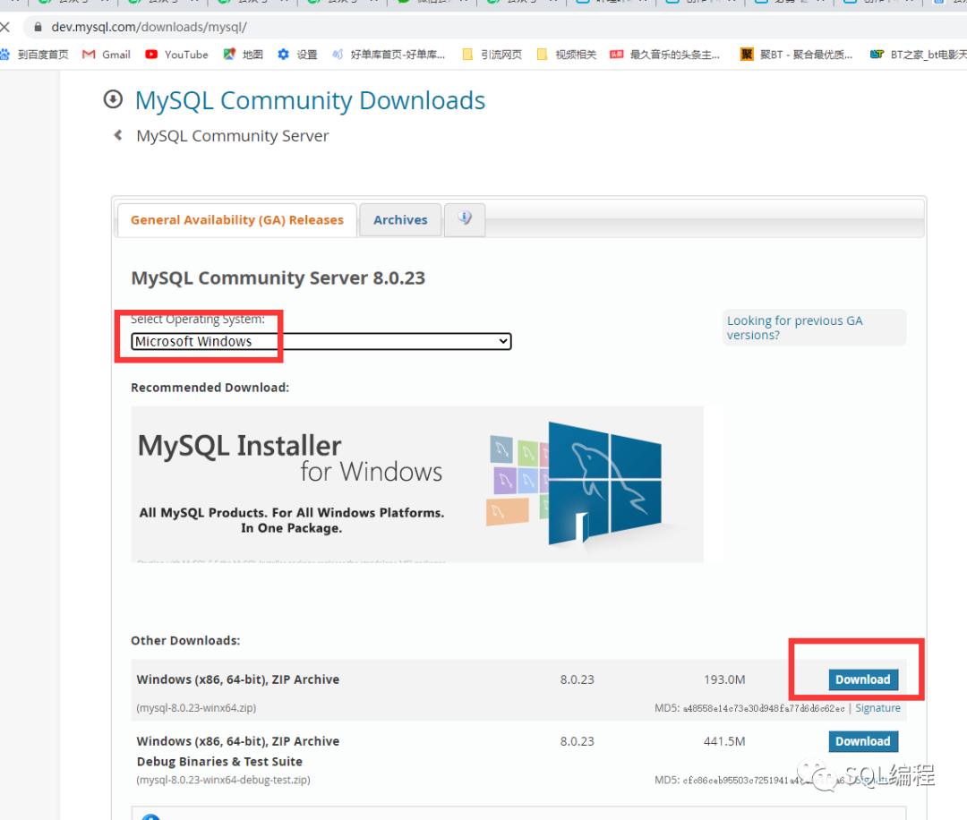 4、选择windows 系统,然后两个download中选择上面这个,点击下载