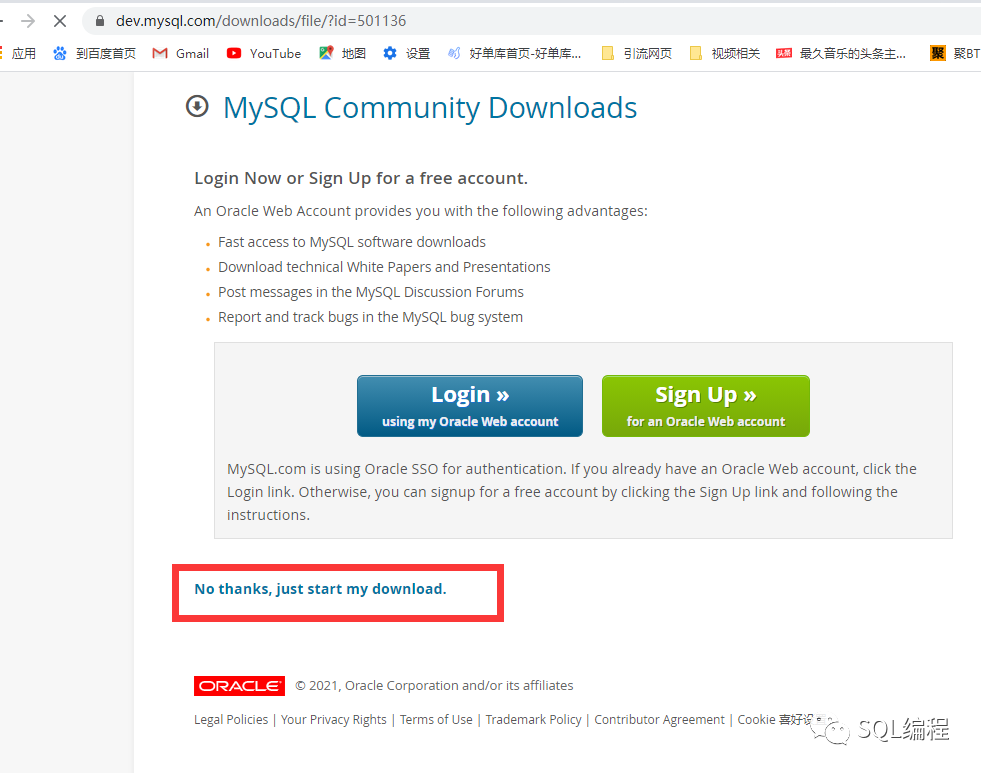 5、跳过登录页面,直接点击 No thanks, just start my download. 下载即可