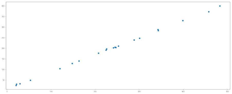 y = [196.63, 203.88, 210.75, 372.74, 202.41, 247.61, 24.9 , 239.34, 140.32, 104.15, 176.84, 288.23, 128.79, 49.64, 191.74, 33.1 , 30.74, 400.02, 205.35, 330.64, 283.45]