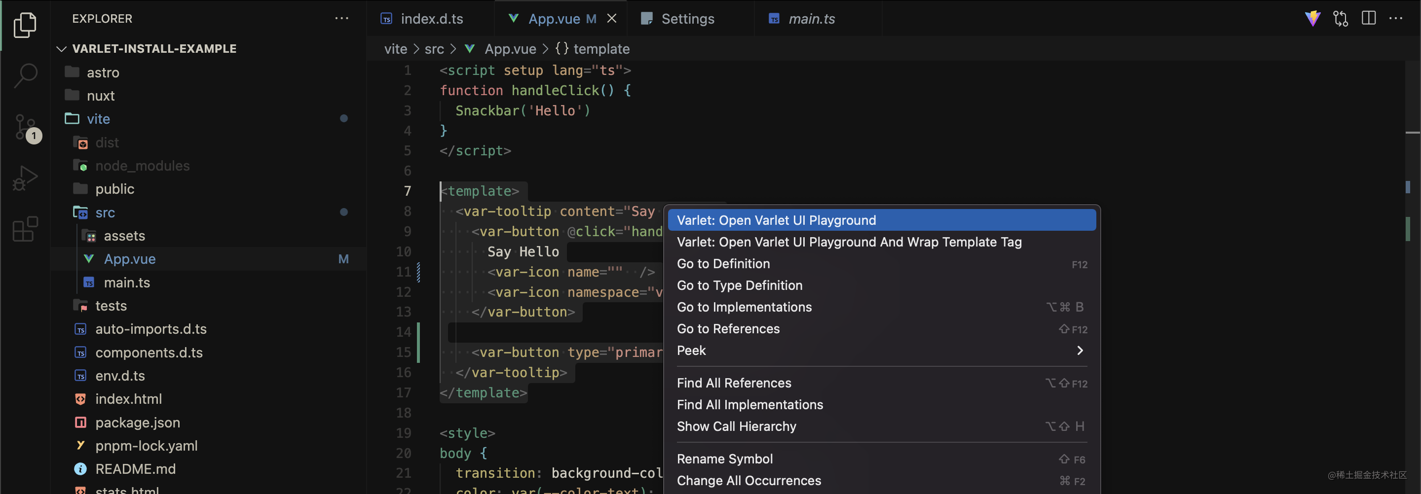 大家好呀~掘金的同学们新年过的如何呀?作者在这里给大家拜一个晚年,祝同学们晚年幸福~ 嘻嘻~。 作者最近一段时间忙于工作和利用一些零碎的时间重做 Varlet VSCode 插件,一直也没时间写文章, 现在算是搞的差不多了,可以放出来分享给同学们了。先放链接...