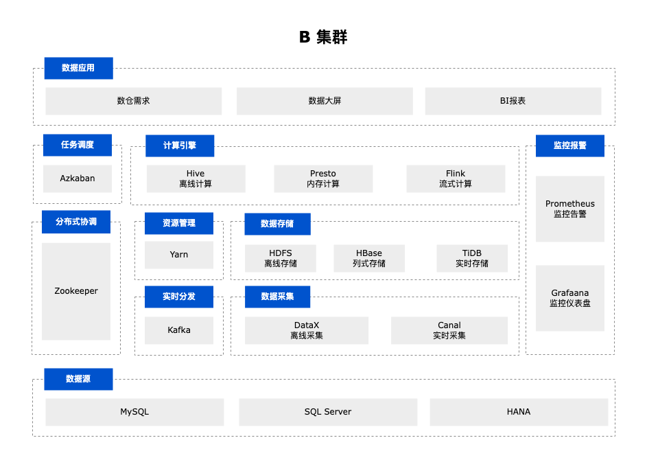 集群间的技术栈和组件较多且存在差异性,对统一开发运维和数据整合都极具挑战性