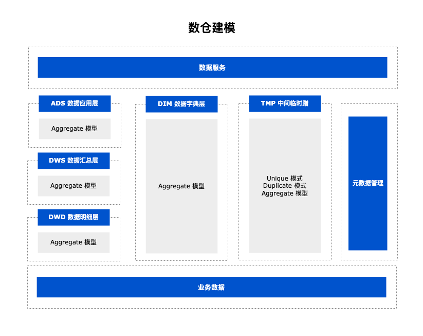 DIM/DED/DWS/ADS 层主要选用 Aggregate 数据模型;Aggregate 数据模型提供的四种聚合方式可以在大部分场景下达到事半功倍的效果,帮助我们快速应对不同的需求场景。