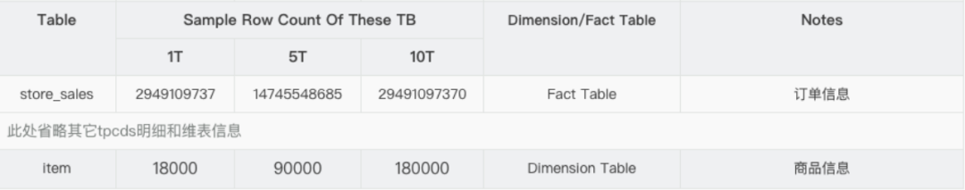 我们生成了 1T、5T、10T 的 TPC-DS 数据集,1T 的数据集约有 30 亿数据量。