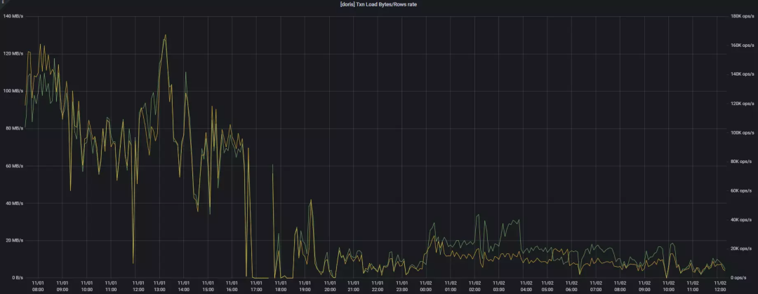 问题描述:1.1.3 release 版本中,高并发的同时进行 Stream Load、Broker Load、insert into 和查询时,读写会变得非常慢,如下图 11/01 19:00 并发上来后的 Txn Load 所示: