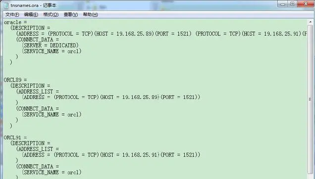 orcl89和orcl91 为单节点ip连接,oracle为双节点ip连接。此处为双节点ip连接数据库。