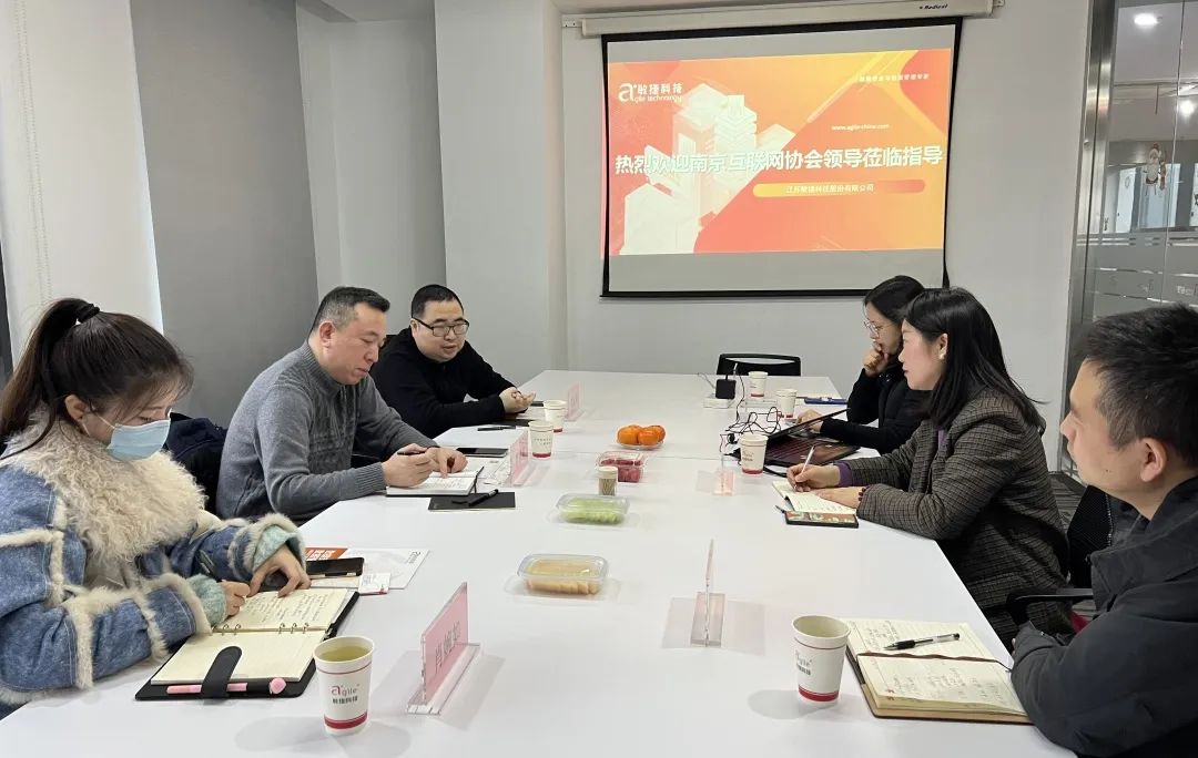 2月9日上午,南京市互联网协会邵秘书长一行调研走访敏捷科技,与公司副总裁倪海燕、东区总经理田丰等进行探讨交流,并对于协会今年如何更好地开展会员单位之间协作、加强会员单位凝聚力等问题深入交换意见。