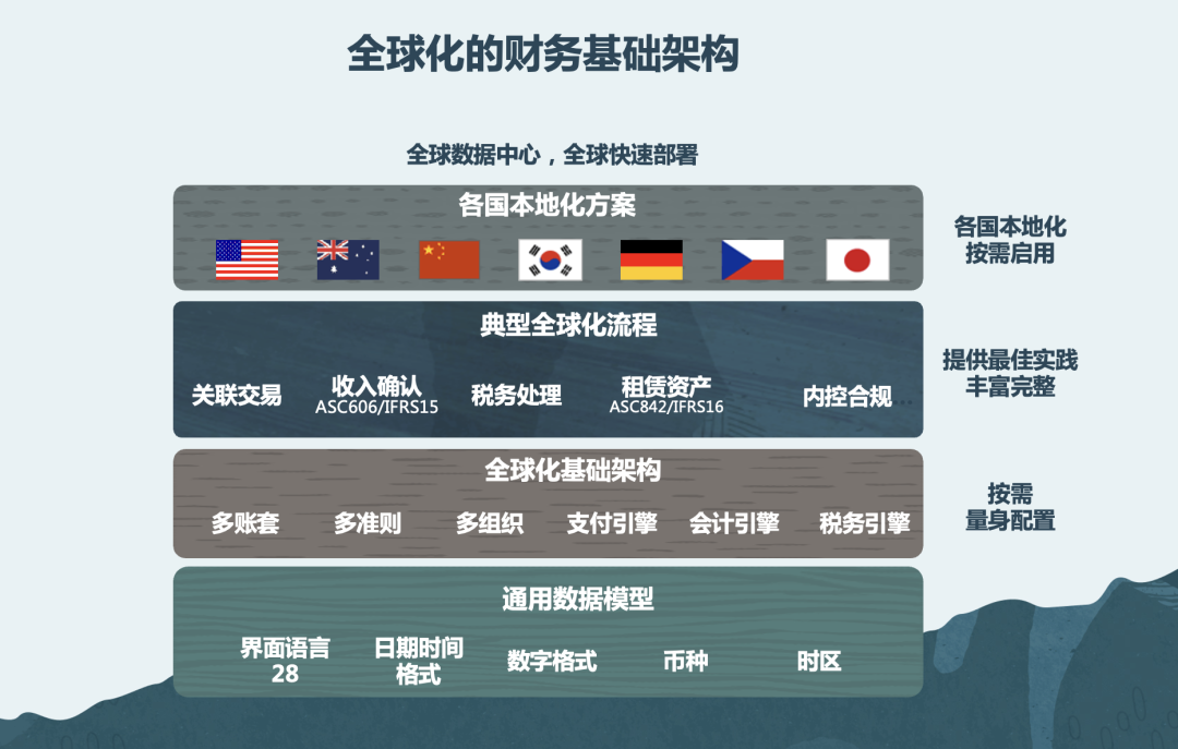 随着中国企业全球化步伐加快,境外子公司和分支机构越来越多,企业在财务管理上面临着本地化合规以及集团化管控等挑战,因此全面提升财务信息化水平尤为重要。而Oracle Fusion 财务云(Oracle Fusion Cloud Financials)解决方案 基于成熟的全球架构,将应用软件全球化业务的能力与本地化功能相结合,以满足财务、税务等本地业务需求。它有28 种语言版本, 能按照当地惯例格式化数字、日期、地址等字段,满足企业跨区域复杂的合规问题,增强全球的用户体验。下面我们来看看它有哪些能力?