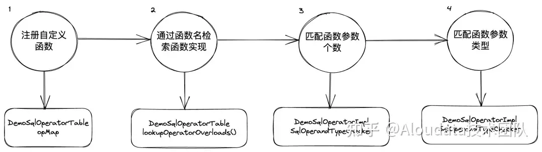 第二步向 ListMultimap<String, SqlOperator> opMap 中注册函数。新建 DemoSqlOperatorImpl 类,继承 org.apache.calcite.sql.SqlFunction ,作为自定义函数的实现类。