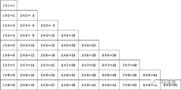 下图是我从网上找到一个九九乘法表,本文要实现的也是这样的效果。