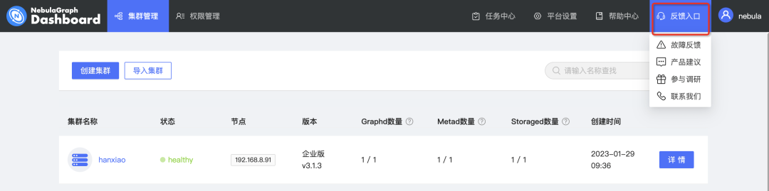 由于 NebulaGraph Dashboard 分为企业版和社区版,下面将分为两部分介绍各自的新特性。