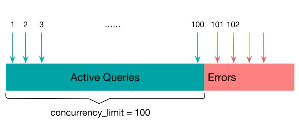并发资源的硬限制,即一个查询只能同时处理 concurrency_limit 的并发请求,如果发起的请求数目超过了该阈值,会直接返回失败的状态。在后续版本中,会支持实时查询任务排队的功能,来避免直接返回失败的状态。